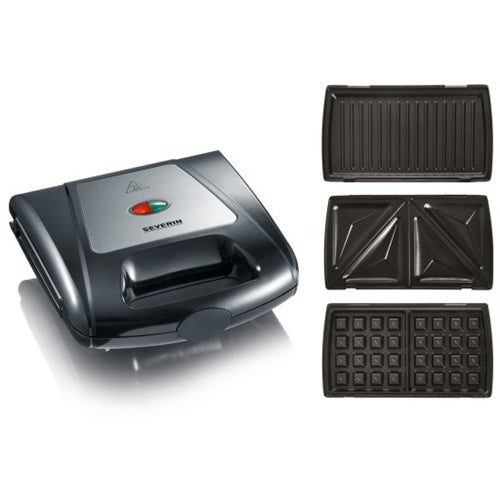 Aparat za sendviče Severin SA 2968, 1000 W, s 3 kompleti plošč, črna/nerjaveče jeklo