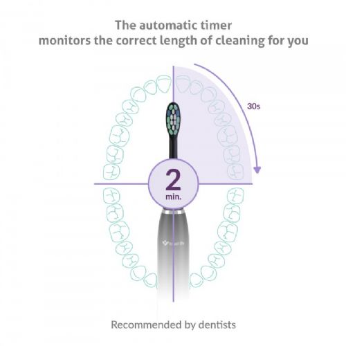 Da bi zagotovili popolno trajanje čiščenja, je naša sonična ščetka programirana tako, da se samodejno izklopi po dveh minutah.