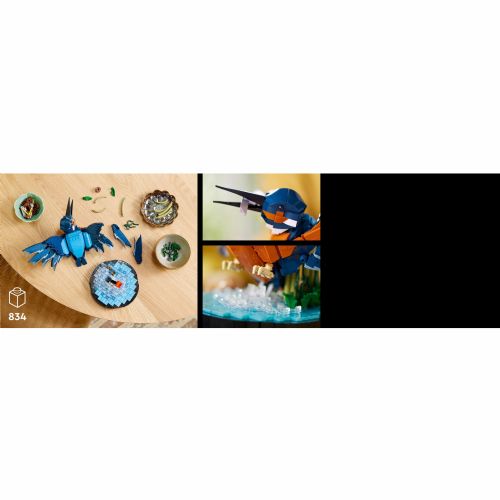Ustvarite impresiven ptičji okras za svojo dnevno sobo ali pisarno s tem kompletom modelov za odrasle. LEGO Icons Kingfisher (10331) je odlično darilo za ljubitelje ptic in vznemirljiv projekt za nove in izkušene konstruktorje LEGO. Model ptice prikazuje vodomca, znanega po značilnem perju in izjemnih lovskih sposobnostih. Na tej upodobitvi ravnokar prihaja iz vode z ribo, ki jo je ujel. Vodno ozadje je delno sestavljeno iz sestavljivega trstičja in služi tudi kot stojalo. Razporedite glavo in kremplje v pozo, ki vam je še posebej všeč, nato pa LEGO ptico razkažite, da jo lahko vsi občudujejo. V aplikaciji LEGO Builder najdete digitalno različico navodil za gradnjo, ki so priložena temu kompletu plovil za odrasle. Navdihujoča zbirka kompletov LEGO za odrasle vam nudi prostor za sprostitev. Model ptice LEGO Icons je posebno darilo za odrasle ljubitelje ptic, moške in ženske, ki radi kreativno sestavljajo in izdelujejo.