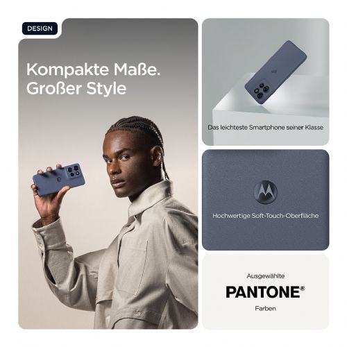 Naj vas tanka oblika ne zavede: pod elegantno zunanjostjo se skriva zmogljiva tehnologija. S sistemom kamer s 50 MP in tehnologijo moto ai (24) lahko preprosto uresničite svoje ideje in si zagotovite osupljive fotografije v vsaki situaciji.