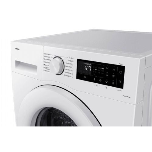 Pralni stroj Samsung WW90CGC04DTELE iz serije WW5000C je sodoben spredaj polnjen model s kapaciteto pranja 9 kg, zasnovan za energetsko učinkovito in nežno obdelavo perila. Uvrščen je v energijski razred A, kar pomeni, da je poraba energije in vode optimizirana za vsakodnevno rabo, medtem ko omogoča različne cikle, ki pokrivajo širok spekter potreb pri pranju oblačil. Tehnologija EcoBubble™ ustvarja aktivne mehurčke iz detergenta, vode in zraka že pri nižjih temperaturah, kar omogoča, da mehurčki hitro prodrejo v tkanine in tako učinkovito odstranijo madeže, hkrati pa varčujejo z energijo in ščitijo vlaken vaših oblačil. Stroj je opremljen z Wi-Fi in SmartThings AI Energy Mode, ki omogoča preko aplikacije spremljanje porabe energije, optimizacijo pranjem glede na porabo ter nadzor in upravljanje na daljavo, kar dodatno prispeva k bolj učinkoviti in prilagojeni uporabi. Ta model ima tudi poseben Less Microfiber ciklus, ki s prilagoditvijo hitrosti vrtenja in intenzivnosti pranja pomaga zmanjšati izločanje mikrovlaken iz tkanin v odpadno vodo, kar je okolju prijazna funkcija. Poleg tega ponuja standardne uporabne možnosti, kot so Bubble Soak za bolj zahtevne madeže, Quick Wash, Hygiene Steam, program za mešano perilo ter programe za bombaž, sintetiko in občutljive tkanine. Pralni stroj ima elegantno belo ohišje z črnimi vrati in LED zaslonom, njegove mere so približno 600 × 850 × 550 mm (širina × višina × globina), zaradi česar se lepo prilega v večino prostorov za pranje. Samsung WW90CGC04DTELE združuje napredne tehnologije pranja in pametne funkcije, ki poenostavijo vsakodnevno pranje in omogočajo učinkovitejšo ter bolj prilagojeno rabo naprav v domu.