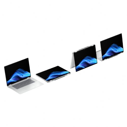 Računalnik HP OmniBook X Flip 16 NGAI združuje hitrost in zmogljivost, ki ju poganja umetna inteligenca, za ustvarjalno delo in zabavo. Njegov velik 16-palčni zaslon se prilagodi vašim potrebam gledanja – položen, prepognjen ali obrnjen – in prikazuje žive barve iz katerega koli kota. Zasnovan je s tankim ohišjem iz reciklirane kovine [1] in osvetljeno tipkovnico z velikimi tipkami za vrhunsko uporabniško izkušnjo.